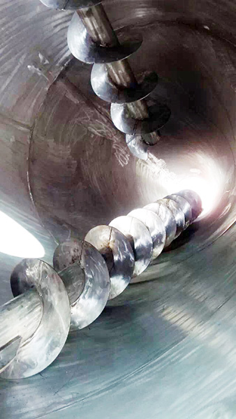2、混合速度快,混合質(zhì)量均勻。本機(jī)雙螺旋為非對(duì)稱(chēng)排列,一大一小擴(kuò)大攪拌范圍,因而對(duì)比重懸殊,混合配比特殊的混料混合較為適合。混合時(shí)間短,混合均勻度高,出料干凈。
