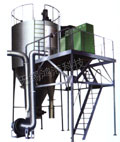 概述: 噴霧干燥是液體工藝成形和干燥工業中廣泛應用的工藝。適用于從溶液、乳液、懸浮液和可塑性糊狀液體原料中生成粉狀、顆粒狀或塊狀固體產品。因此,當成品的顆粒大小分布、殘留水份含量、堆積密度和顆粒形狀必須符合精確的標準時。噴霧干燥是一道合適的工藝。 工作原理: 空氣經過濾和加熱,進入干燥器頂部空氣分配器,熱空氣呈螺旋狀均勻地進入干燥室。料液經塔體頂部的高速離心霧化器,(旋轉)噴霧成細微的霧狀液珠,與熱空氣并流接觸在短的時間內可干燥為成品。成品連續地由干燥塔底部和旋風分離器中輸出,廢氣由風機排空。 特點: ★ 干燥速度快,料液經霧化后表面積大大增加,在熱風氣流中,瞬間就可蒸發95%-98%的水份,完成干燥時間僅需數秒,特別適用于熱敏性物料的干燥?! ?br /> ★ 產品具有良好的均勻度、流動性和溶解性,產品純度高,質量好?! ?br /> ★ 生產過程簡化,操作控制方便。對于含濕量40—60%(特殊物料可達90%)的液體能一次干燥成粉粒產品,干燥后不需粉碎和篩選,減少生產工序,提高產品純度。對產品粒徑,松密度,水份,在一定范圍內可通過改變操作條件進行調整,控制和管理都方便。